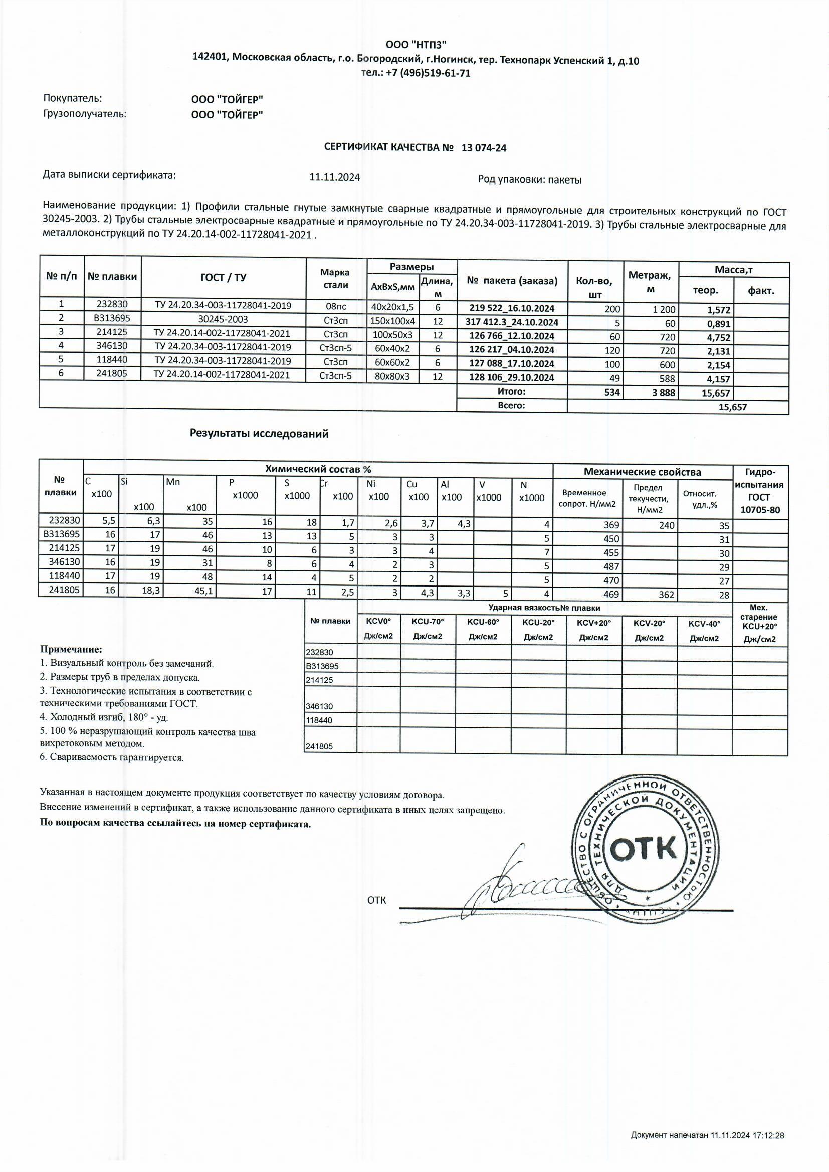 Предлагаем Вам скачать сертификат для товара - Труба профильная 150х100х4 мм. При необходимости документы заверяются печатью организации.